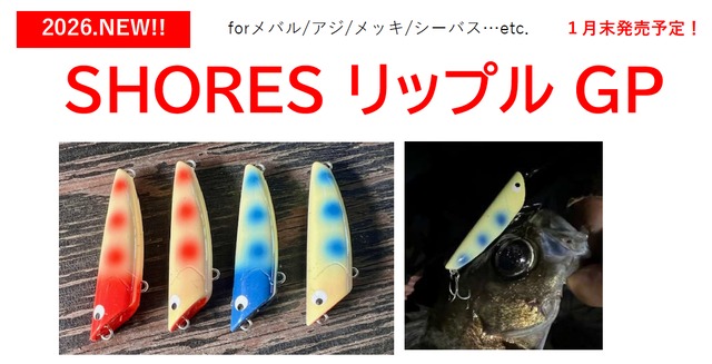 2026年第一弾は大人気のSHORESリップル →Go-Phishカスタムがついに登場! タダ巻はもちろんテーブルターンまでこなすマイクロ サーフェイスプラグ! フローティングモデルを美しいカラーリングでまずは厳選の4色で発売です! 52mm 3.4g Ring#1 Hook ST36TN 前#14 後#16